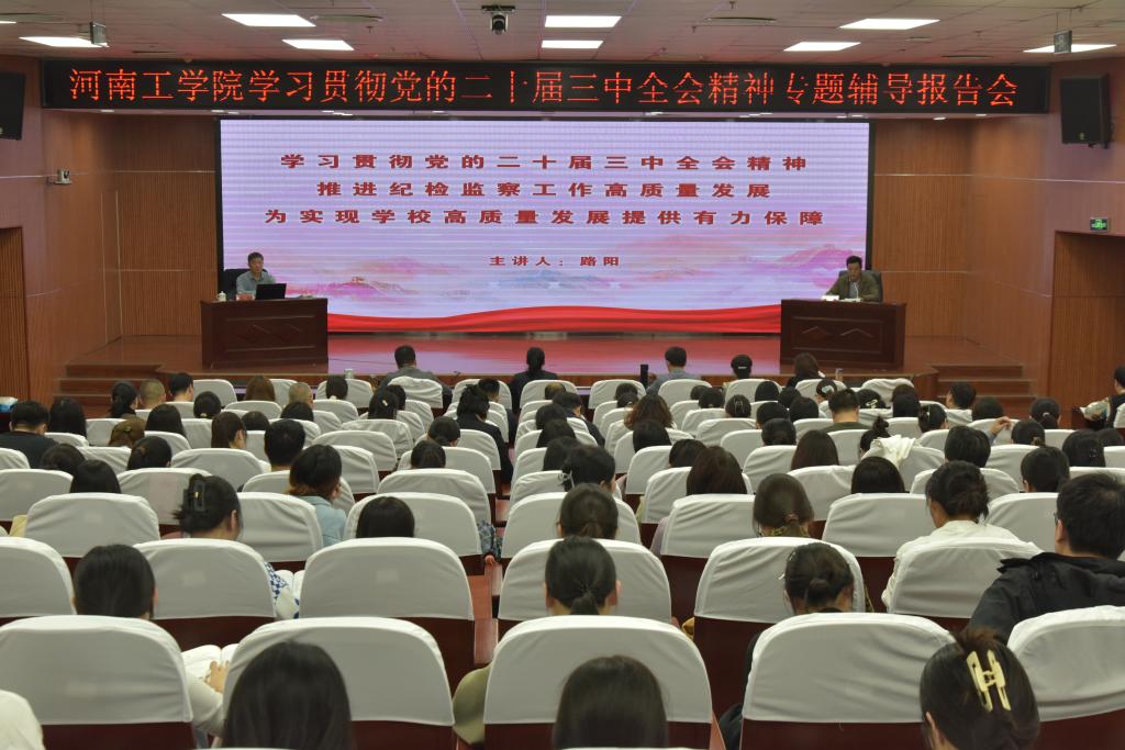 10月17日下午,学校在办公楼第三会议室召开学习贯彻党的二十届三中全会精神专题辅导报告会,学校纪委书记、监察专员路阳为管理学院和外国语学院师生、纪委委员、二级党组织纪检委员、纪委机关全体干部作党的二十届三中全会精神专题辅导报告,会议由管理学院党委书记刘永涛主持。